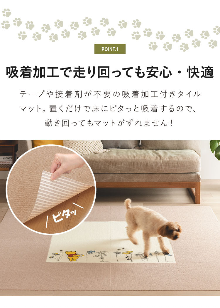 ディズニーくまのプーさんの異なるプリント柄で、並べ方次第でオリジナルマットが作れます。