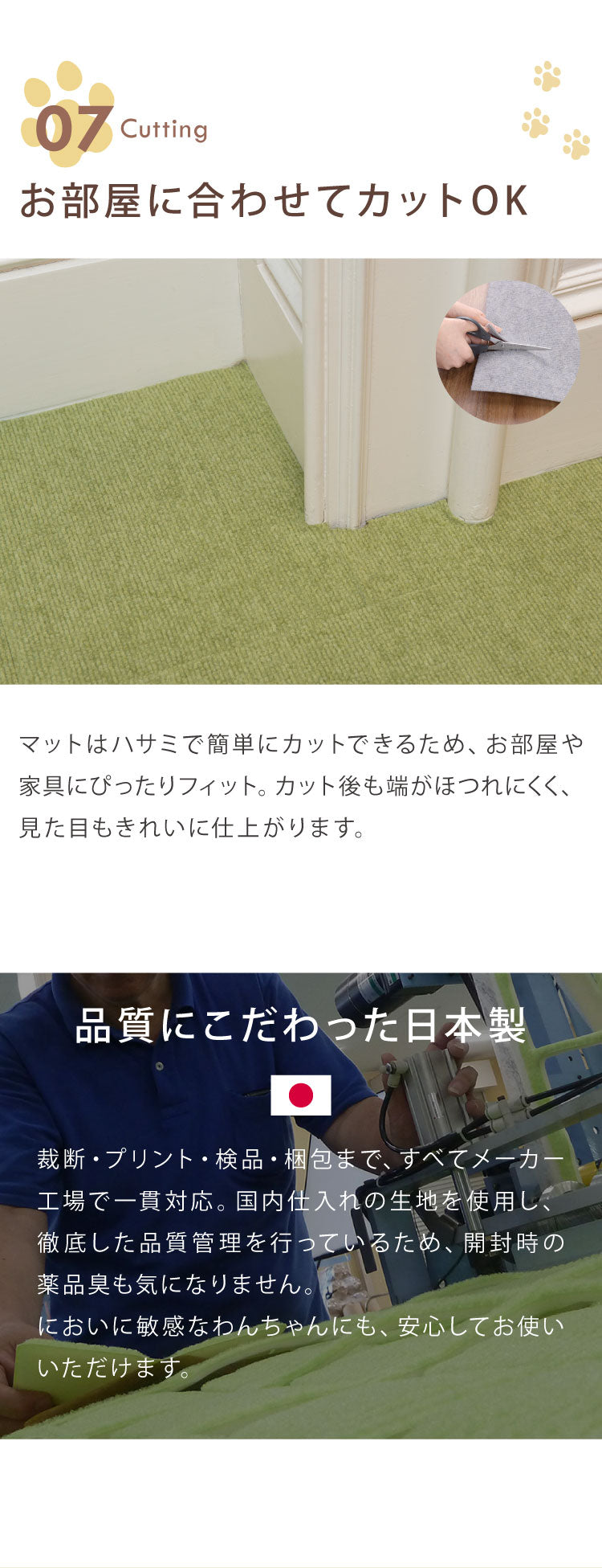 ・ハサミで手軽にカットできます。カットしてもほつれません。