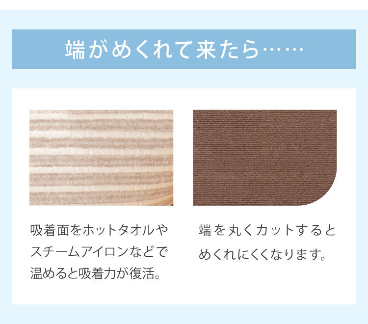 ・掃除機をかけても、裏面の吸着効果でめくれ上がることがないので、お掃除もラクラク!