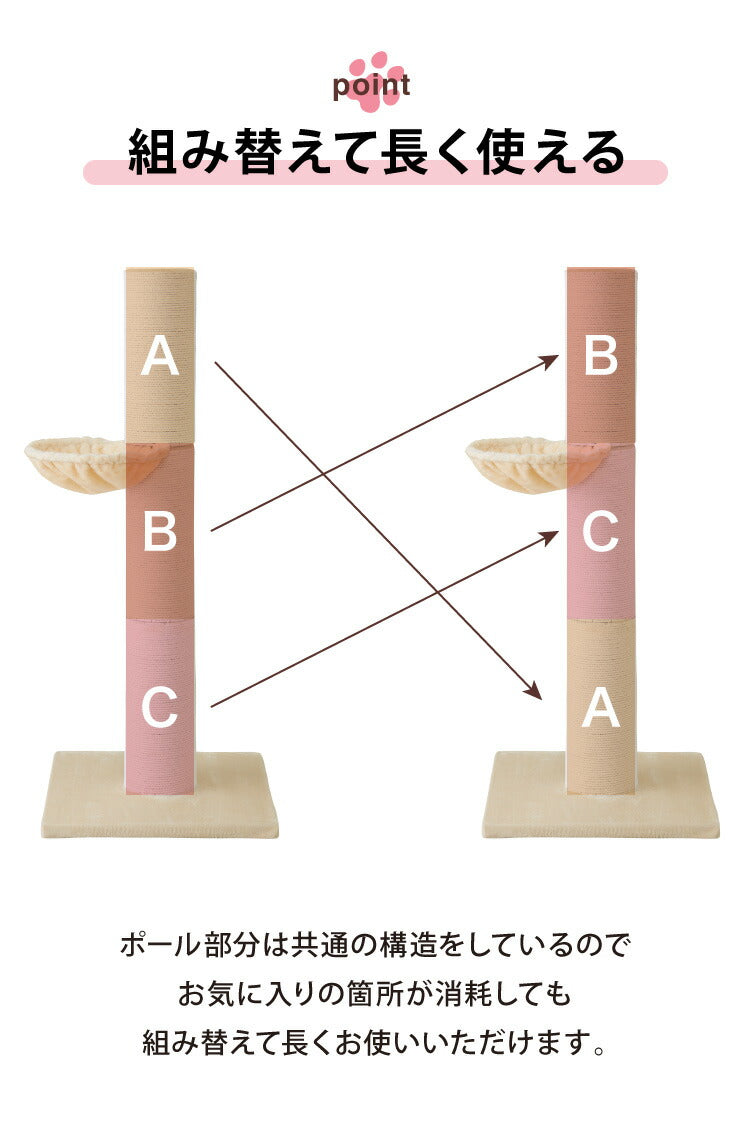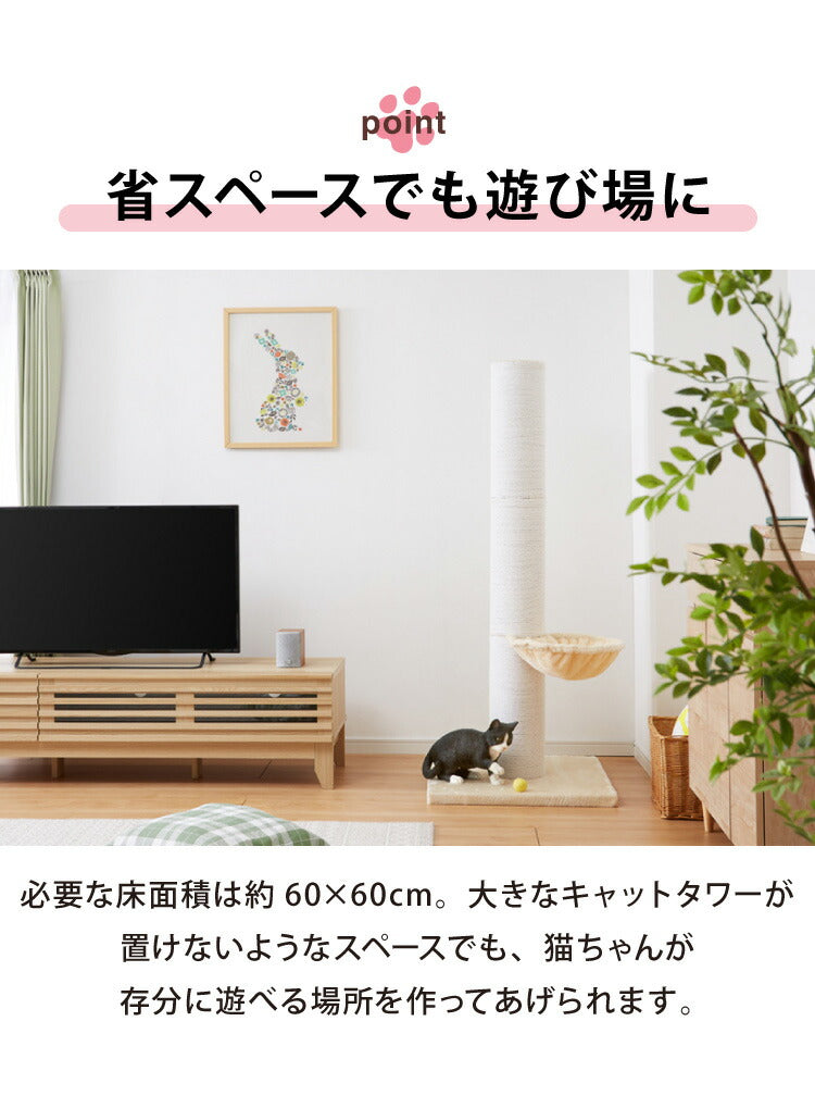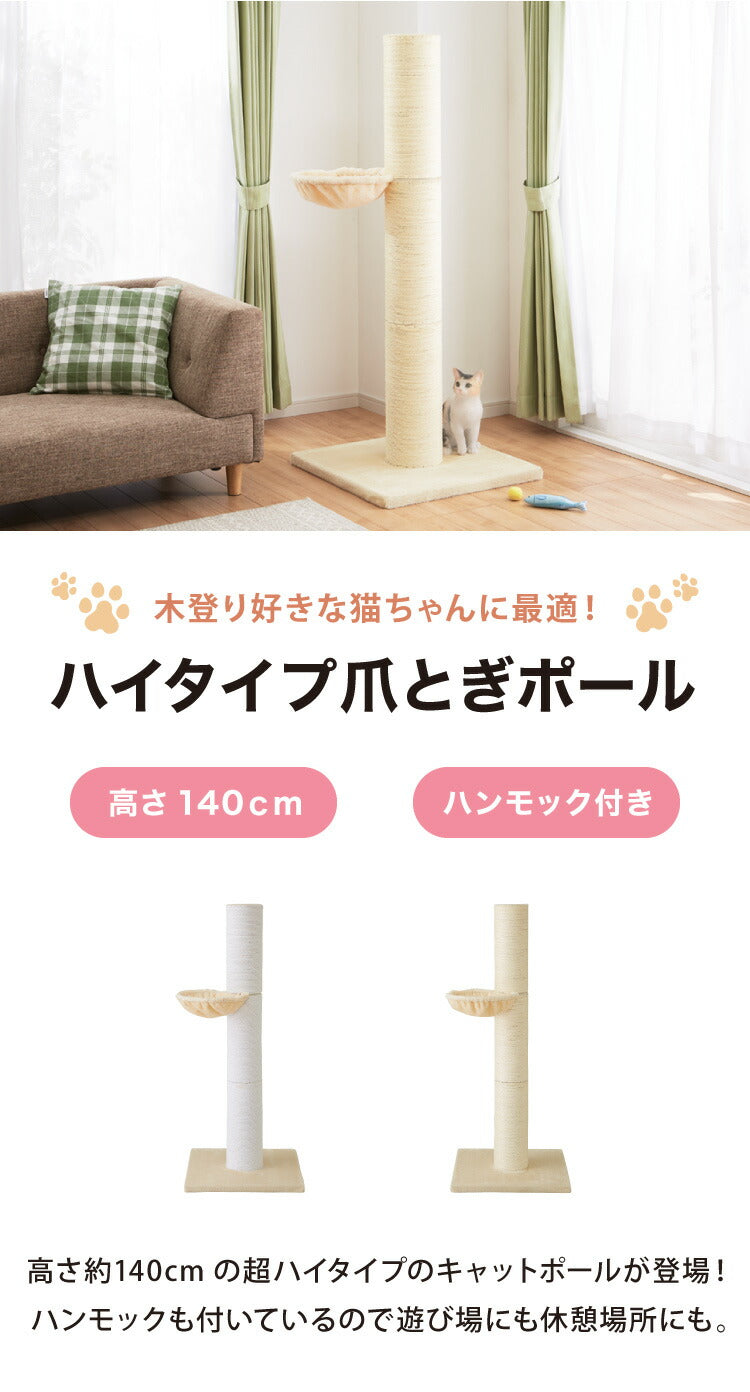 爪とぎ ポール 猫 据え置き 極太 ハンモック付き 高さ142cm ハイタイプ 綿 麻 ナチュラル 北欧 爪とぎポール スクラッチポール 倒れにくい 立って ペット用品 キャットタワー