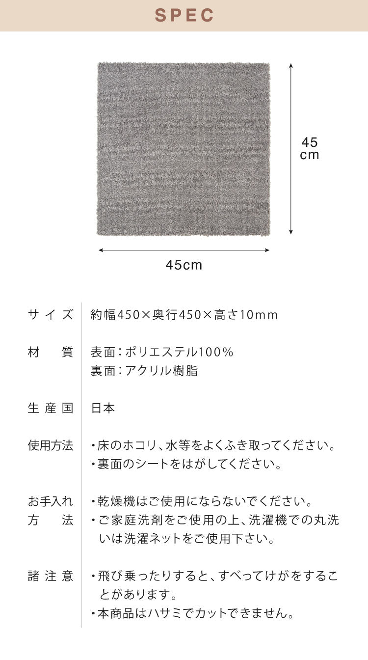 ピタペトモ 吸着マット 2枚入 45×45cm プレーン 無地 日本製 国産 マット タイルマット 洗える はがせる 貼り直せる 吸着 ズレない ジョイントマット フロアマット ペットマット ペット用マット