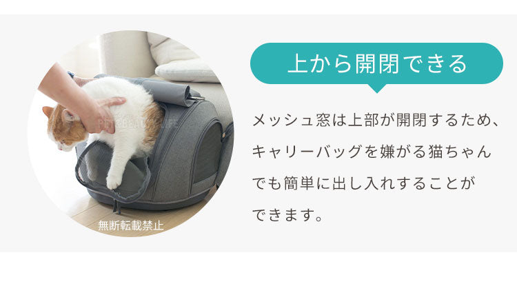 猫のお出かけといえば動物病院への通院がほとんどです。なのでキャリーバッグを嫌がる猫は多いですが、上から出し入れができるので、いざというときに入らない子に向いています。