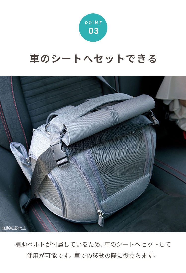 車中でリアシートのシートベルトでもバッグが固定できるように補助ベルトを付属しています。