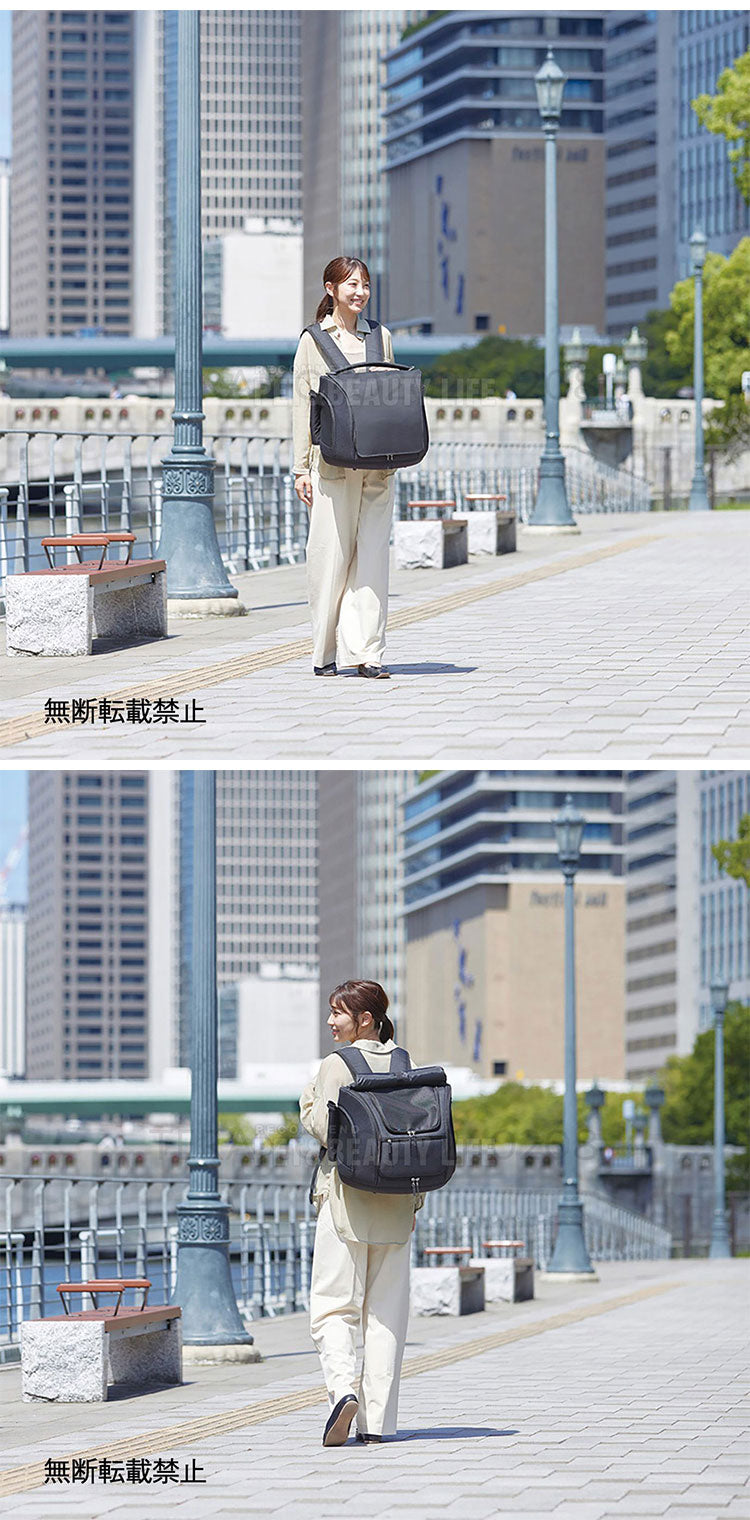 [本体]生地:ポリエステル、メッシュ:ポリエステル・PVC、ベルト:PP、バックル:POM、金具:スチール、留め具:スチール・マグネット、クッション:ポリウレタン、底:ポリエステル・EVA、