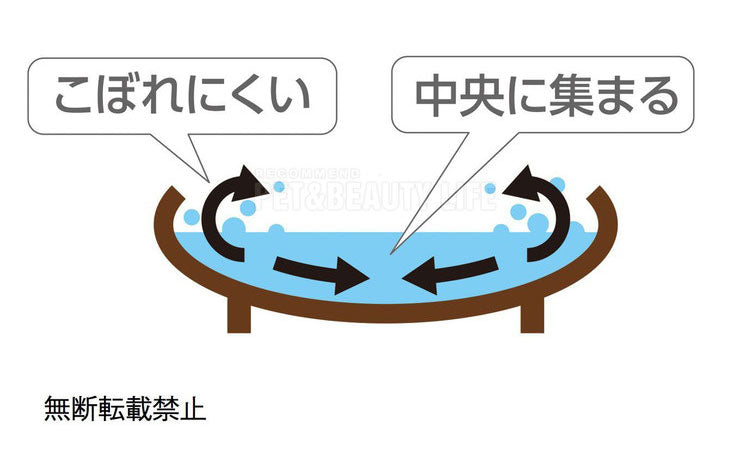 また、すり鉢状になっているため水が減ると中央に集められることで外への水跳ねが軽減されます。