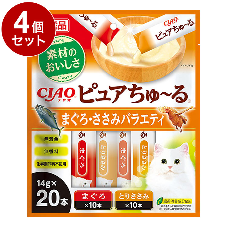 【4個セット】 いなば ピュアちゅ~る まぐろささみバラエティ 14g×20本 ピュア ちゅーる ちゅ~る ピュアちゅーる 無添加 日本製 国産
