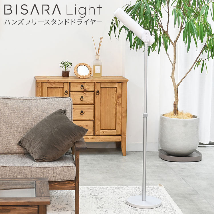 ハンズフリースタンドヘアドライヤー BISARA LIGHT(ビサラ ライト) BSR001WH マイナスイオン 吹き出し口2カ所 風量切替 温度切替 高さ調節 角度調節 美髪 リモコン操作 リモコン収納